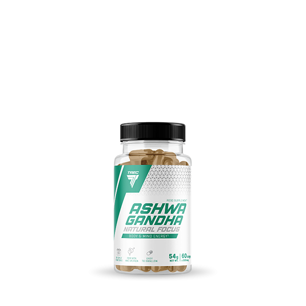 ASHWAGANDHA NATURAL FOCUS. Suplement diety. Zawiera kofeinę; nie zaleca się stosowania u dzieci i kobiet w ciąży (11 mg w porcji dziennej – 1 kapsułka). Produkt w postaci kapsułek zawierający ekstrakty roślinne. 1Ashwagandha pomaga utrzymać sprawność fizyczną i umysłową w przypadkach osłabienia, wyczerpania, zmęczenia i utraty koncentracji.