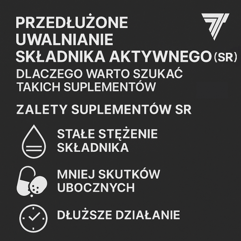 Nowoczesne suplementy diety o przedłużonym uwalnianiu (SR, czyli z ang. sustained release) stanowią prawdziwy przełom w dziedzinie suplementacji.[1] Technologia ta została opracowana z myślą o tym, aby składniki aktywne uwalniały się stopniowo w organizmie przez dłuższy czas, a nie zaraz po zażyciu, jak w przypadku tradycyjnych tabletek.