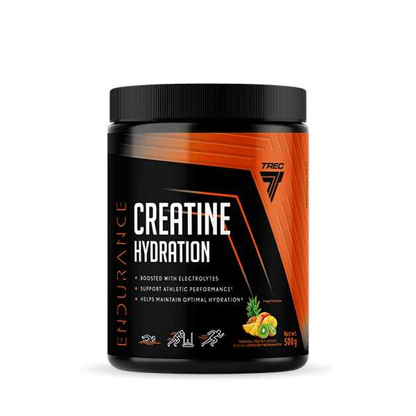 CREATINE HYDRATION. Suplement diety. Zawiera substancję słodzącą. Produkt w proszku o smaku owoców tropikalnych, na bazie kreatyny z dodatkiem elektrolitów. CREATINE HYDRATION zawiera 1kreatynę, która zwiększa wydolność fizyczną w przypadku następujących po sobie krótkich, bardzo intensywnych ćwiczeń fizycznych. Korzystny efekt występuje w przypadku spożywania 3 g kreatyny dziennie. Ponadto 2magnez, który pomaga w utrzymaniu równowagi elektrolitowej.