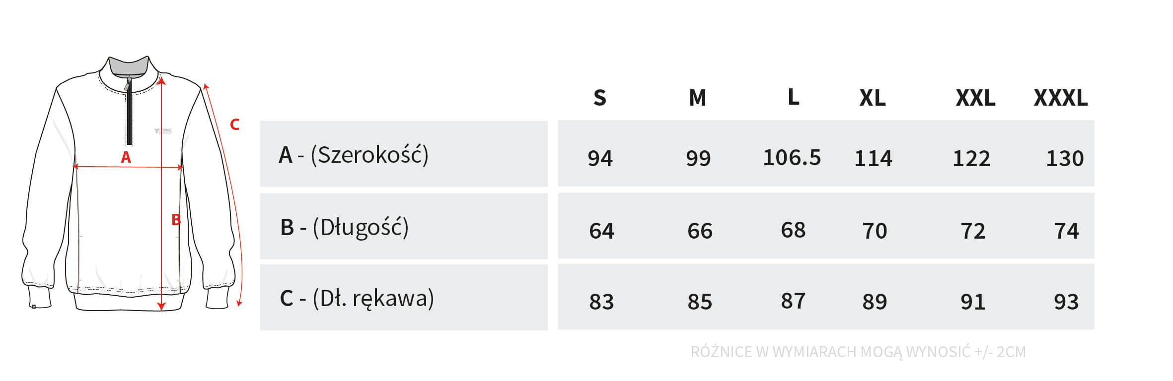 TABELA ROZMIARÓW