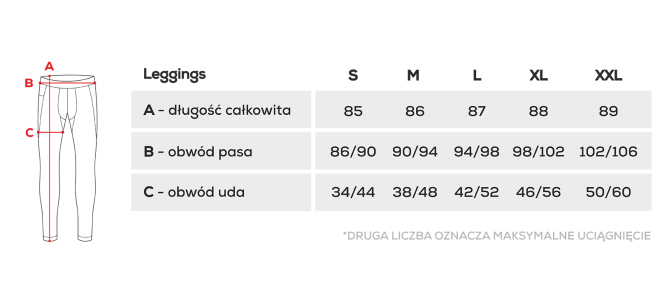 Materiał jest bezproblemowy w użytkowaniu, ponieważ daje się łatwo prać i nie kurczy się, a po praniu szybko schnie i nie wymaga prasowania. Legginsy utrzymują odpowiednią temperaturę ciała.
