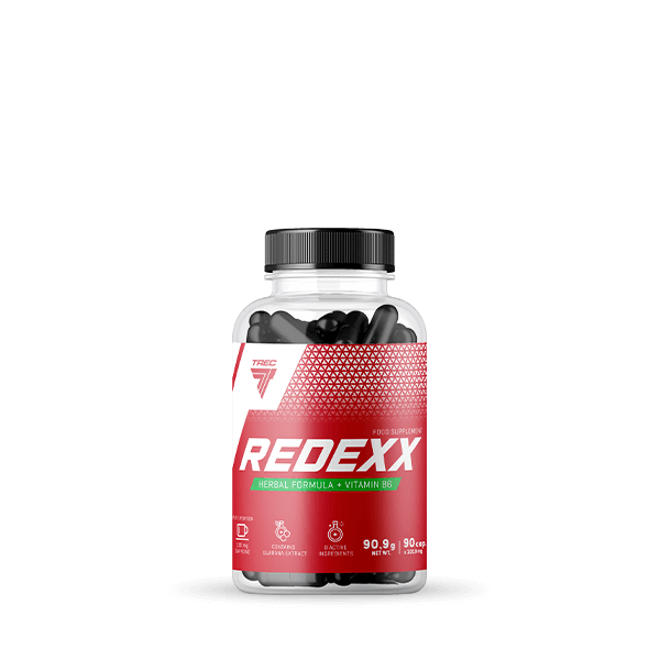 REDEXX to formuła ekstraktów roślinnych w wygodnej formie kapsułek, wzbogacona o L-tyrozynę, kofeinę kwas pantotenowy, witaminę B6 i chrom. Skład bazuje na ekstrakcie z nasion zielonej kawy i nasion guarany.