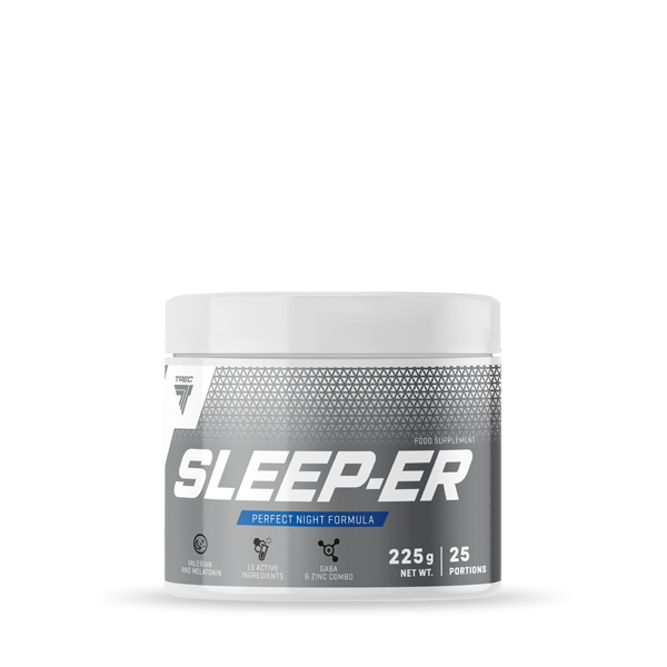 Suplement diety. Zawiera substancję słodzącą. Nocna formuła. SLEEP-ER zawiera melatoninę, kwas D-asparaginowy (DAA) i kwas gamma-aminomasłowy (GABA), ekstrakty roślinne: z kozłka lekarskiego i melisy oraz aminokwasy, minerały (magnez i cynk) oraz witaminę B6.