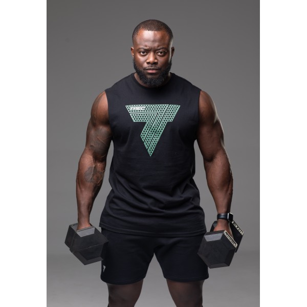 Czarny tank top męski z dużym nadrukiem logo Trec.