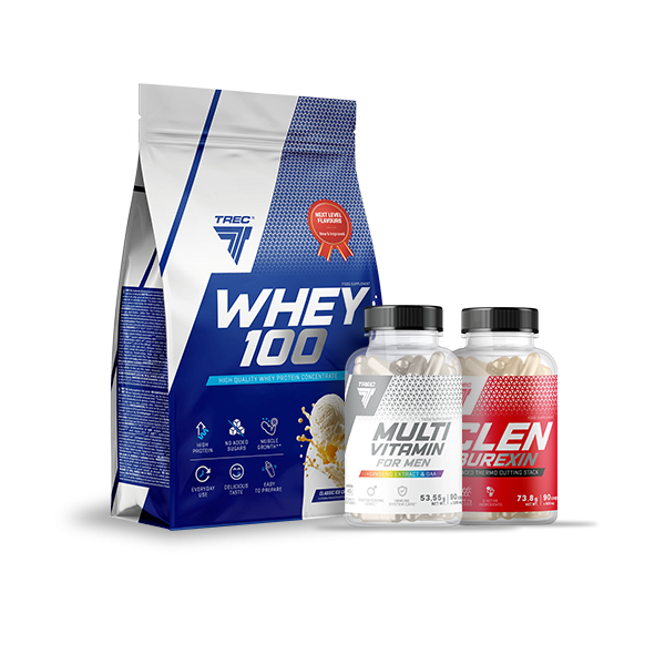 - Zestaw zawiera białko, spalacz tłuszczu i kompleks witaminowy dla mężczyzn.